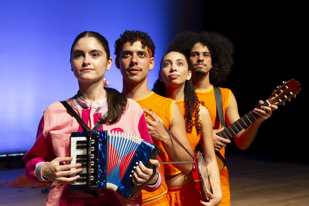 Vem de Minas Gerais o grupo de teatro Trupe Qualquer. Com elenco formado por Beatriz Lira, Christiam Concolato, Giovanna Stehling e Jeann Cavallari, a companhia desafia as distâncias, com cada um de seus integrantes residindo em cidades diferentes. Afinadíssimo em interpretação, voz e corpo, o grupo tem direção de Rafael Coutinho. Dessa mina de talentos vem tanta coisa boa, aportando em São Paulo no significativo espaço cultural da Paideia Associação Cultural, sede da Cia Paideia de Teatro. Fomos recebidos por gente da companhia, que estava em peso organizando o local, entre elas João, Giovanna e Aglaia. Aglaia Push, uma das fundadoras do coletivo, nos acolheu compartilhando novidades sobre as participações d’A Paideia, inclusive internacionalmente. Em seguida, se daria essa importante troca com o grupo mineiro. Minas Gerais, território conhecido por suas riquezas materiais e imateriais, do ouro e da cultura, tem nesse e outros grupos um manancial de utopias. De fazeres teatrais únicos, a partir de suas referências e inventividades. Que podem auxiliar a vislumbrar outras infâncias e juventudes possíveis. E outras formas de abordar temas tão caros à contemporaneidade.